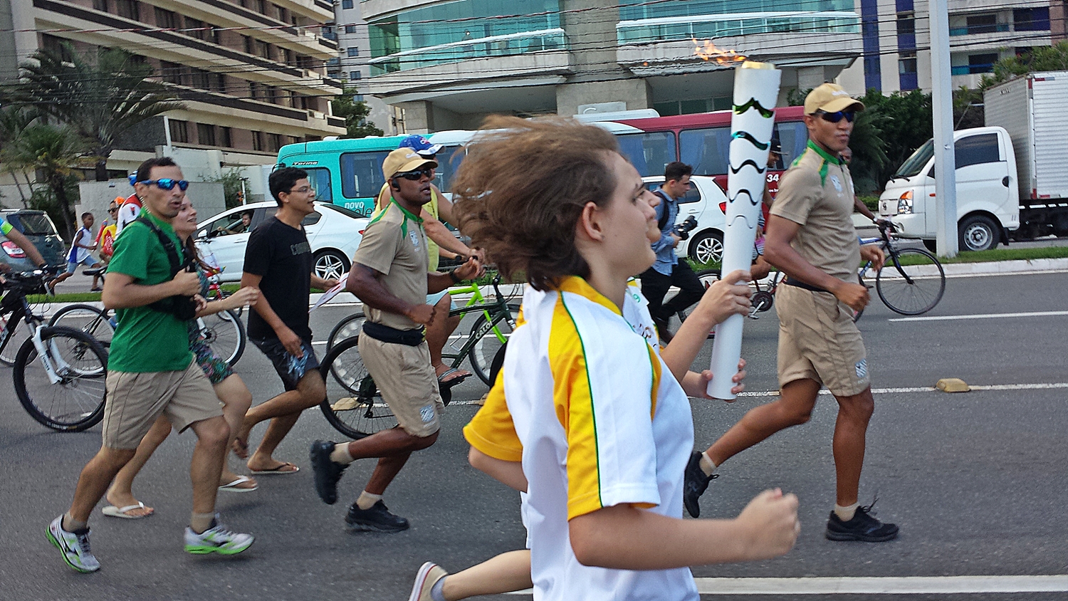 Trigêmeas conduzem Tocha Olímpica em Vitória